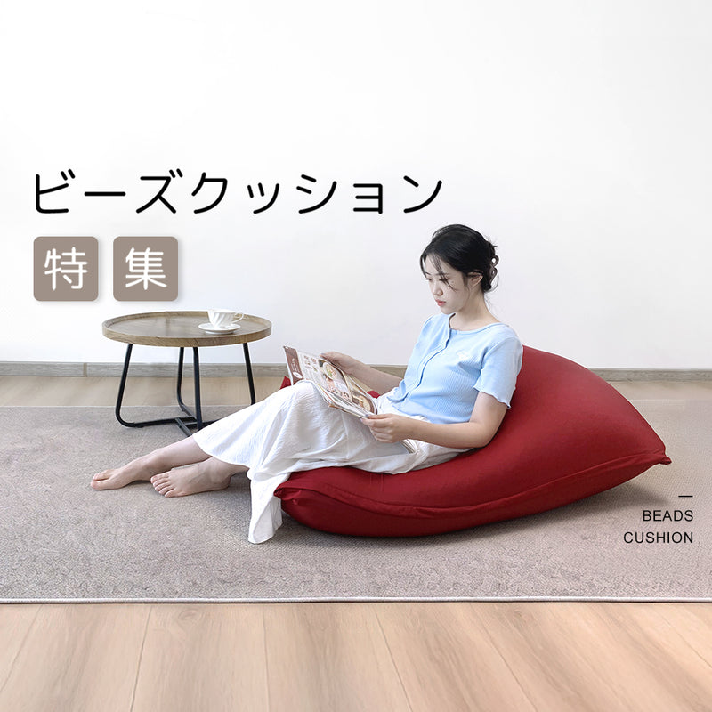 RAKU 【雑誌掲載の同商品】 ビーズクッション 特大 大きい 背もたれ ソファ ビーズソファー 長方形型 座椅子 補充 体にフィットするソファ 洗えるソファカバー付き 国産ビーズ 人をダメにする 座布団 クッション ビーズ 座布団 ソファーカバー 無地