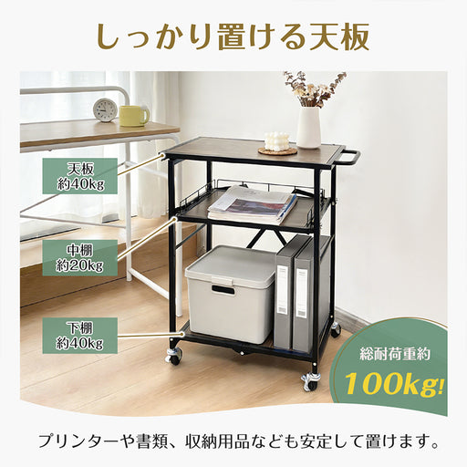 詳細を全部見るRAKU プリンター台 プリンタラック サイドワゴン 組立不要 展開式 キャスター付き 中棚スライド式 棚板高さ10段階調節 W55*D35*H72cm 総耐荷重100kg 折りたたみ式 コンパクト収納 取っ手付き デスク下