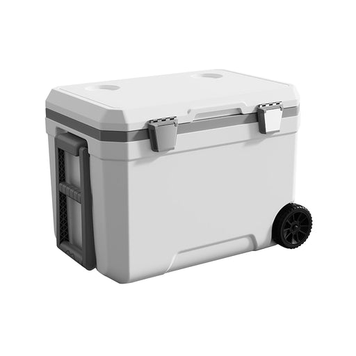 RAKU クーラーボックス 45L約120時間保冷 大容量 保冷剤付き 持ち運びやすい ハンドル&キャスター付き ゴムラバー 高密閉性 水抜き栓 カップホルダー 頑丈 車載 レジャークーラー アウトドア キャンプ/BBQ/お釣り/防災