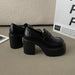 【7日内出荷】【9cmヒール】ローファー レディース スクールローファー 厚底 コインローファー 9cmヒール スクエアトゥ パンプス チャンキーヒール ボリューム プラットフォーム 革靴 歩きやすい オケージョン 脚長 中学 高校 学生 コスプレ 通学 黒 白 オールシーズン