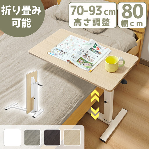 詳細を全部見るRAKU 折りたたみ サイドテーブル 昇降 キャスター ガス圧 昇降式サイドテーブル 高さ70~93cm 幅80cm 介護テーブル ベッド横 木目 無段階高さ調整 補助テーブル ソファテーブル