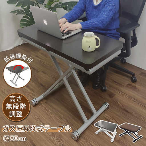 【天板拡張可能設計】単なるガス圧昇降式テーブルでなく、用途に合わせて天板拡張も可能。省スペースにしたい場合は、コンパクトサイズにして使用でき、急な来客時天板を拡張してダイニングテーブルに変身、2人~4人掛けまで使用可能。【無段階調整&用途により昇降】昇降式テーブルなので、用途や好みによって自由...