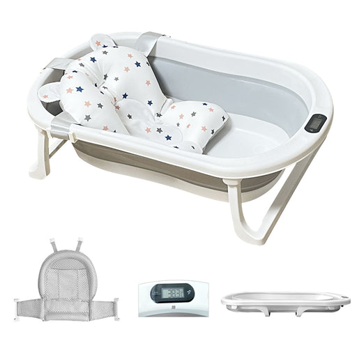 RAKU ベビーバス 新生児バス バスタブ バスネット付き 子供用風呂 赤ちゃん用 0〜6歳適応 折りたたみ 収納容易 滑り止め 温度計付き 安心感