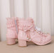 【5cm ヒール】厚底ブーツ ロリータ ブーツ レディース ショートブーツ 編み上げブーツ 甘ロリ お姫様 森ガール ロリィタ靴 レース リボン パール 5cm 太ヒール 歩きやすい 痛くない サイドジップ おしゃれ かわいい お茶会 コスプレ 黒 ピンク 白 秋冬