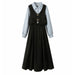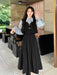 【7日内出荷】ワンピース ロングワンピース 切り替えワンピース Aライン ワンピ ロングワンピ ロング マキシワンピース 襟 無地 きれいめ シンプル マキシ レイヤード風 長袖 大きいサイズ 襟付き重ね着風 秋 冬