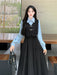 地雷服 ロリィタ服 夢かわいい ゴシック ハロウィン 学生風 可愛い襟 ロングワンピース 長さ選択可能 お揃い 姉妹 リボン付き 重ねる風 チェック柄 ワンピース