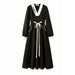 【7日内出荷】ワンピース ロングワンピース 刺ワンピース Aライン ワンピ ロングワンピ ロング マキシワンピース vネック 無地 きれいめ マキシ レイヤード風 長袖 大きいサイズ 重ね着風 秋 冬