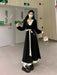地雷服 ロリィタ服 夢かわいい ゴシック ハロウィン 学生風 可愛い襟 ロングワンピース 長さ選択可能 お揃い 姉妹 リボン付き 重ねる風 チェック柄 ワンピース