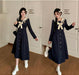 【7日内出荷】【L-4XL】長袖 ワンピース 制服 JK服 女子高生 スクールウェア 学園祭 文化祭 ラージサイズ Aライン レディース 春 秋制服 学院風 ロリータ 可愛い ネイビー コスプレ ハロウィン
