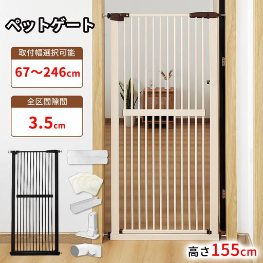 詳細を全部見るRAKU ペットゲート 安全ゲート155cm ペットフェンス 全柵間隔3.5cm ドア付き 取付幅67〜246cm選択可 猫脱走防止フェンス 猫飛び越え脱出防止