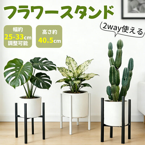 【幅25~33cmまで調節可能】スタンド幅を調整できる設計で、鉢のサイズや形状に 合わせて柔軟に対応。植物の成長や鉢替え時にも買い替え不要で、長く使えるフラ ワースタンドです。 【上下反転の2WAY仕様】スタンドの向きを変えることで設置位置の深さを調整でき、 浅鉢・深鉢それぞれに対応可能。鉢の...