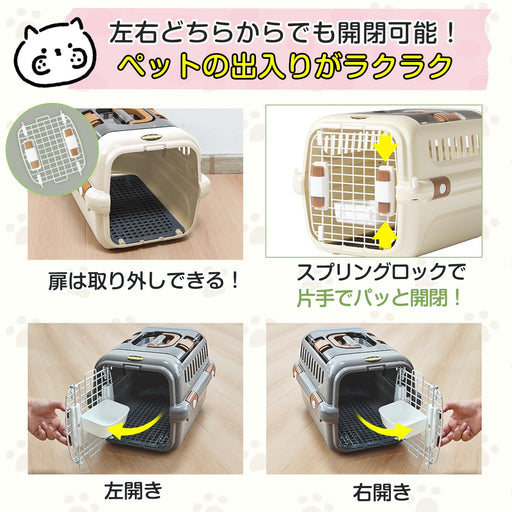 【左右どちらからでも開閉可能】扉は左右両開きに対応しており、ペットの 出入りがスムーズに行えます。スプリングロック採用で、片手でもパッと開閉 でき、日常使いや移動時も快適にご使用いただけます。 【見守りやすいトップオープン構造】トップオープン仕様で、移動中も愛犬・ 愛猫の様子を簡単に確認できま...