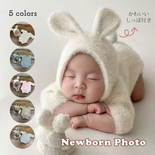 新生児 ニューボーンフォト セット 衣装 ウサギ帽子 ベビー ロンパース 帽子セット 月齢アート 寝相アート 月齢 フォト グッズ 男の子 女の子 ニューボンフォト ギフト 撮影 帽子 赤ちゃん ニット帽 出産祝い 兎年 干支 卯年 ハロウィン衣装