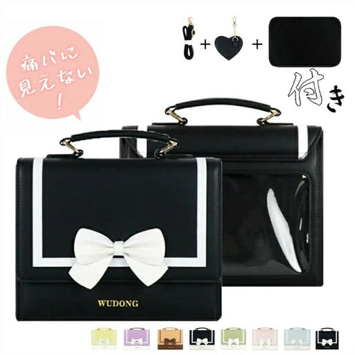 痛バッグ 4color手提げ・肩掛け・斜め掛けサイドに透明ポケット付き約10cmのぬいぐるみ・マスコットをしっかり展示軽量で持ちやすく、通学・通勤・イベントに大活躍ファスナー開閉で安心収納イベント・ライブ・推し活にぴったりの透明展示ポケット普段使いもできるシンプル可愛いデザイン
