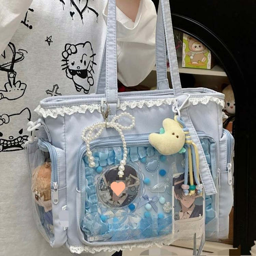 詳細を全部見る【7日内出荷】【2WAY】ショルダーバッグ 肩掛け トートバッグ 痛バ バッグ 無地 軽量 ぬいぐるみバッグ ビニールバッグ 透明 缶バッジ 見せる収納 痛バック 通学 推し活 通勤 カジュアル レディース おしゃれ 女の子 かわいい