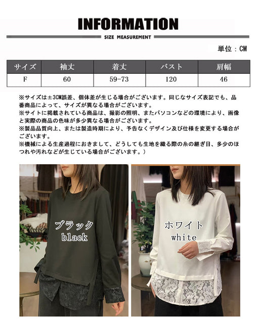 詳細を全部見る【7日内出荷】レイヤード ロンT レース 袖 裾 レースインナー トップス レディース レース レイヤードトップス 長袖 Tシャツ カットソー インナー チュニック 無地 透け 肌着 重ね着 きれいめ 大きいサイズ 体型カバー お尻が隠れる 厚手 白 黒 秋 冬