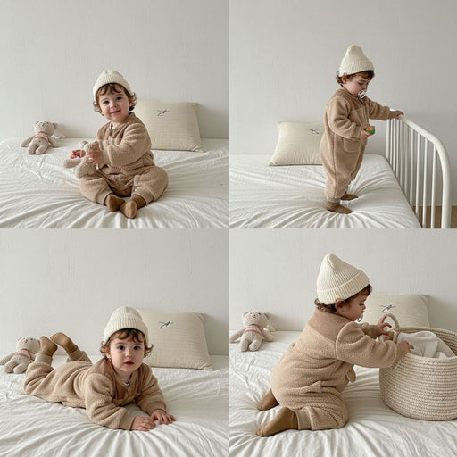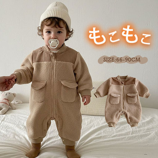 詳細を全部見る【7日内出荷】ベビー ボア カバーオール コート アウター ジャンプスーツ ジャケット かわいい 裏起毛 中綿 男の子 女の子 ロンパース 新生児 可愛い あったかい 子供服 防寒着 普段着 秋冬 出産祝い ギフト 前開き 着替え便利 外出服