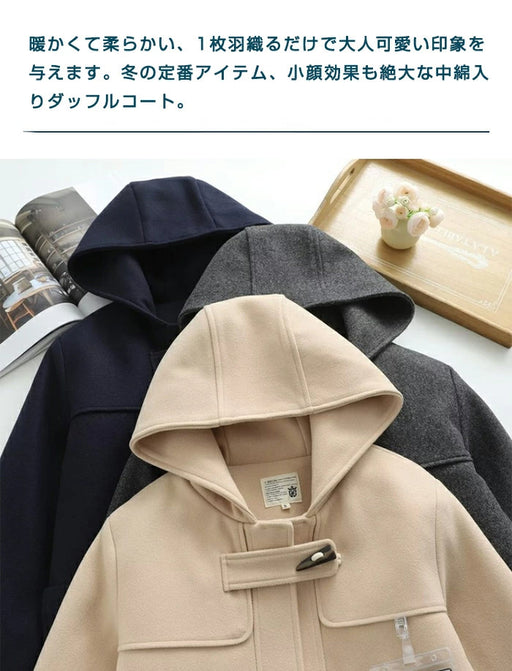 詳細を全部見る【7日内出荷】ダッフルコート 中綿 スクールコート レディースフード付き 秋冬 アウター ジャケット ミドル丈 韓国 トラッド 暖かい 防寒 厚手 長袖 きれいめ カジュアル ゆったり 体型カバー 通勤 通学 学生 20代 30代 40代 ベージュ ネイビー グレー