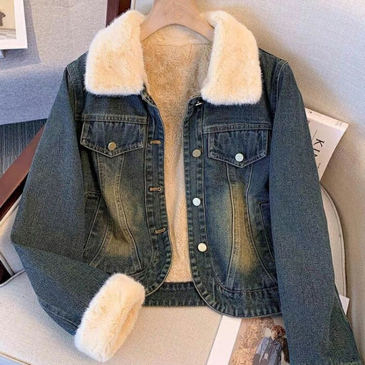 【7日内出荷】デニムコート デニムジャケット Gジャン レディース 裏ボア ファーコート 秋冬 アウター ボアブルゾン ジャケット 防寒 厚手 もこもこ ふわふわ 暖か ショート丈 ボアコート 前開き 襟 ゆったり 体型カバー Gジャン おしゃれ カジュアル