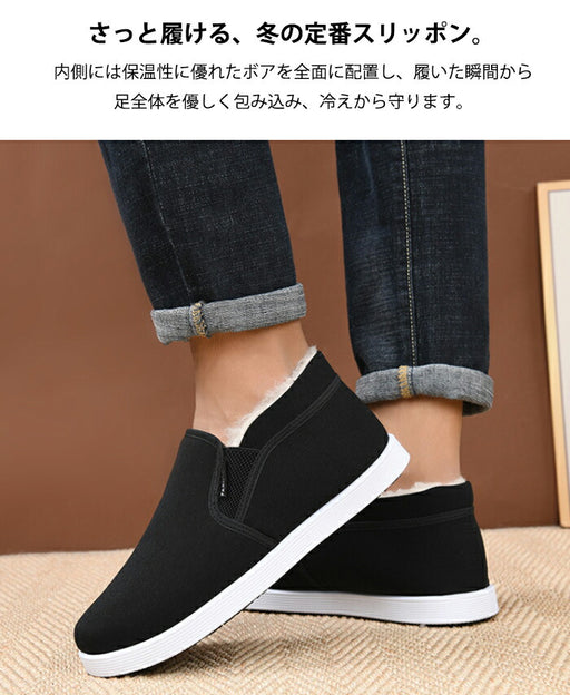 詳細を全部見る【7日内出荷】スリッポン メンズ 裏ボア スニーカー 暖かい あったか 歩きやすい 軽量 防寒 保温 サイドゴア 履きやすい 脱ぎ履きしやすい カジュアルシューズ モカシン シンプル ムートン 普段履き おしゃれ 秋冬 大きいサイズ 27.0cm 黒 ブラック