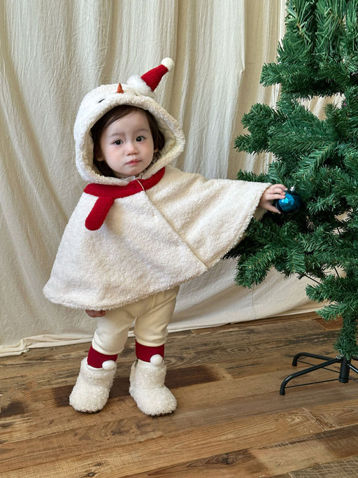 フードがついた雪だるま衣装風の可愛いケープが登場!素敵なクリスマスデザインは、それがよりお祝い雰囲気。♪ちょっとしたお出かけ着にも記念日写真にもおすすめです。お子様の記念日・出産祝い・ハロウィン・感謝祭・クリスマスなどにプレゼントにしても良い選択肢です。男の子 女の子 アウター 羽織 軽い 秋...