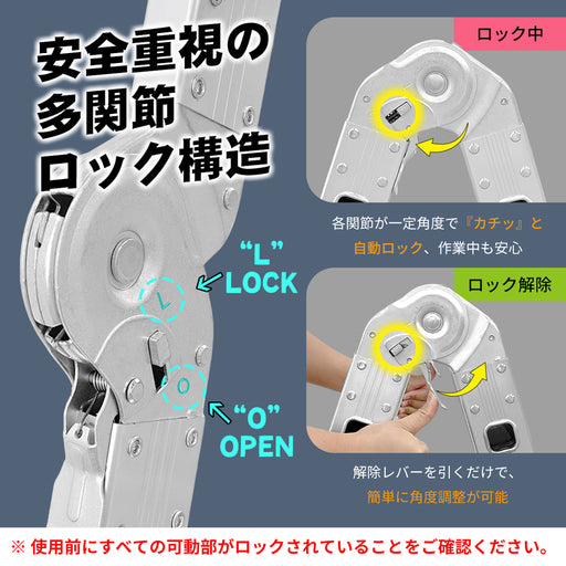 【優れた安定性】折りたたみ式の多機能はしごは、高強度アルミニウム合金素材を採用。軽量ながらも堅牢な構造で、最大耐荷重は約150kg。しっかりとしたフレーム設計により、長時間の高所作業や繰り返し使用にも耐え、安定した作業環境をサポートします。 【折りたたみ式・コンパクト収納】折りたたみ可能な設計...