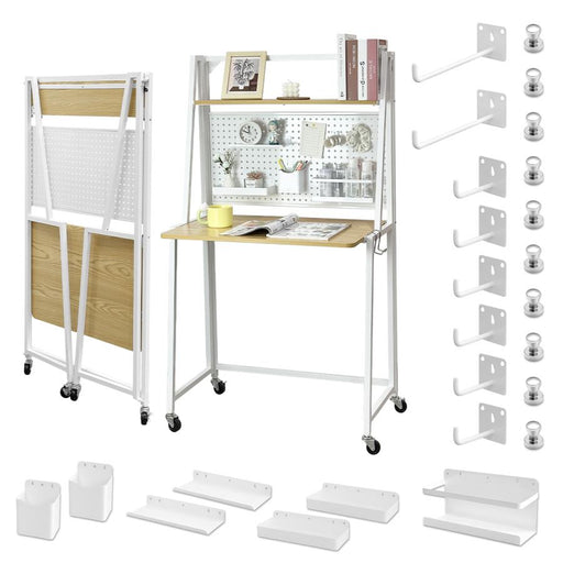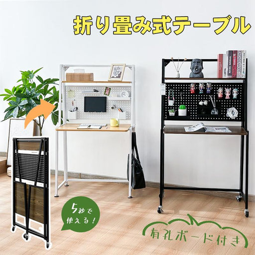 詳細を全部見るRAKU 書斎机 学習机 折り畳みテーブル 上棚付き 本棚 収納力抜群 組立不要 天板73.5×48cm キャスター 固定脚 角丸加工 耐久性 パソコンデスク PCデスク