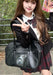 【7日内出荷】痛バッグ スクールバッグ JK ショルダー 大容量 合皮 PU 中学生 高校生 女子高生 バッグ トートバッグ 防水 底鋲付き レディース 防水 肩掛け 斜め掛け 手提げ 通学カバン クリア 見せバッグ 推し活 制服 JK鞄 可愛い おしゃれ 黒 茶