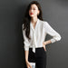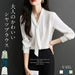 【7日内出荷】ブラウス レディース オフィス ボウタイ スカーフタイ リボンタイ Vネック スーツ カットソー きれいめ 長袖 シフォン 白ブラウス 白シャツ インナー トップス オフィスカジュアル シワになりにくい イージーケア 春 夏
