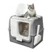 RAKU 猫トイレ 大型 上から猫トイレ シンプル 猫用品 ダブル脱臭 砂の飛び散り防止 2WAY出入り方法 掃除しやすい スコップ付 大容量 優れた耐久性 猫のトイレ ネコ 猫 トイレ ニオイの広がり防止 洗いやすい