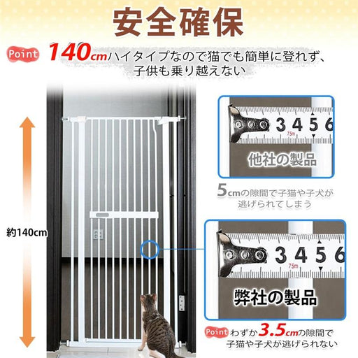 詳細を全部見るRAKU ペットゲート 高さ140cm 3.5cm柵間隔 取付幅76cm-125cm選択可 ベビーゲート 突っ張り ハイタイプ 扉自動開閉 オートクローズ 飛び越え防止