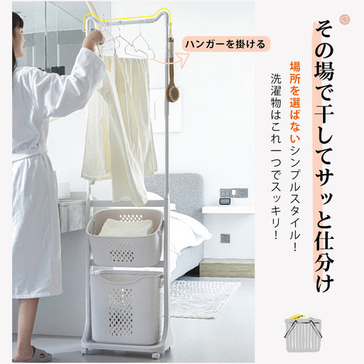 🤩【ランドリーワゴン・ハンガーラック】 下のバスケットに一時的に洗濯物を置きながらハンガーで上の部分に洗濯物をつるしておけるようになっています。ハンガーラックとしても使えて、上に衣類を掛けられて、下に小物(バッグや靴下)を収納できます。🤩【キャスター付きで移動も楽々】 360度自由移動可...