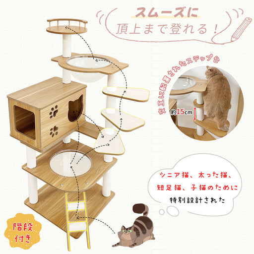 【臭いゼロホワイトコットン支柱】ホワイトコットン支柱を使用し、屑や臭いが出にくく肌触りが良いです。11本の支柱があり、猫ちゃんが好きな位置で爪とぎできます。 【スムーズに頂上に登れる】交互に配置されたステップ台と登り降りしやすい階段が動きが苦手な猫ちゃんために特別設計で、子猫からシニア猫まで、...