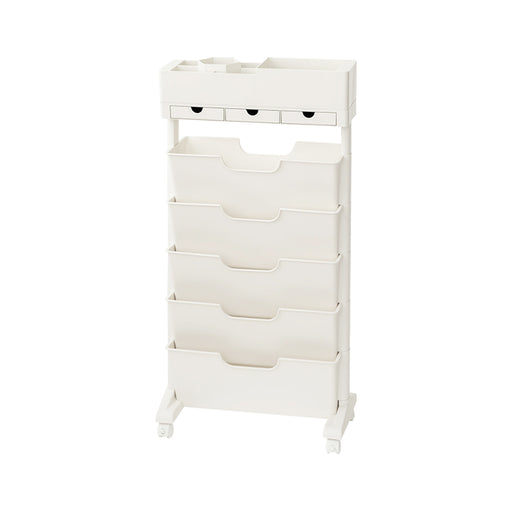 RAKU 6段式収納ワゴン キャスター付き 3つの引き出し 頑丈で大容量 書籍収納 コンテナー 分類収納 本ラック 学生/受験生 オフィス/教室 資料整理 教科書/文房具入れ 効率上げ ボトルホルダー 倒れない 約70冊入れる おしゃれ