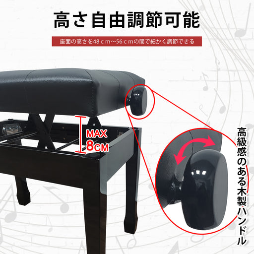 詳細を全部見るRAKU 楽譜収納付き ピアノ椅子 ピアノイス ピアノスツール ベンチタイプ 高さ微調整可能 幅55cm*奥行33cm 無段階ネジ式昇降 電子ピアノ椅子 ホワイト ブラック