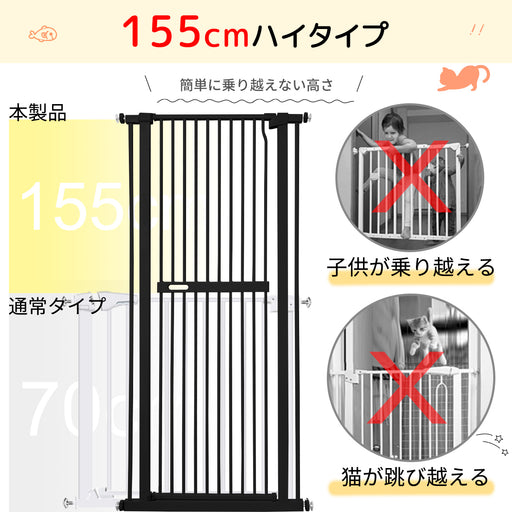 【高さ155cmで安全確保】高さ155cmのハイタイプバージョンで、猫でも簡単に飛び越えない高さです、子供が登って柵を乗り越えするのを防げます。また、全区間柵間の隙間はわずか3.5cmなので、子猫や子犬でも通り抜けられないです。【穴開け不要&取付簡単】突っ張り式ゲートなので、壁などに穴を開ける...