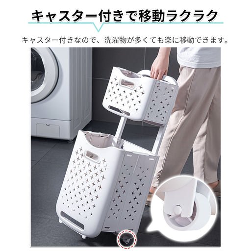 詳細を全部見るRAKU ランドリーバスケット 2段 折り畳み 洗濯バスケット 洗濯かご 壁掛け可能 キャスター付 移動便利 上下分離可能 スリム 隙間収納 ランドリー収納 風呂場収納 洗面所収納