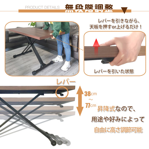 【無階段調整】昇降式テーブルなので、用途や好みによって自由に高さ調節可能、操作が簡単だし、いろんな場合に対応できるし、大変便利!【移動ラクラク】キャスター付で一人でも楽に移動できる。また、キャスターにはストパーが付いているので、使用中にテーブルが動く心配がない。【幅広く使える昇降式テーブル】様...