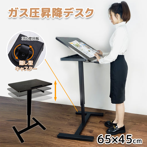 詳細を全部見るRAKU 昇降デスク 幅約65×奥行約45cm 高さ約72~110cm 昇降テーブル スタンディングデスク ガス圧昇降式 無段階調整 天板角度調節可能 キャスター付き コンパクト 移動ラクラク 省スペース 在宅勤務 日本語取扱説明書付