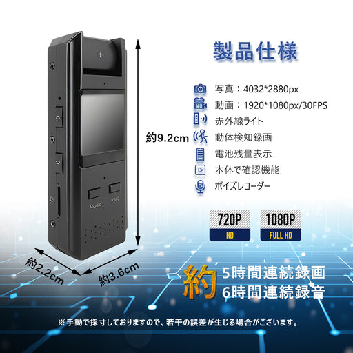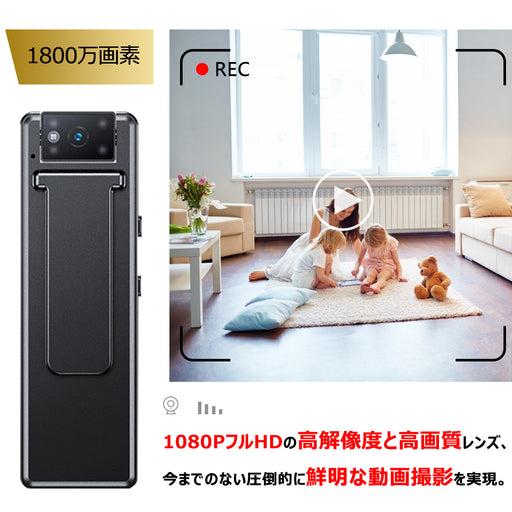 【1800万画素&赤外線暗視機能】1080P高画質1800万画素カメラで、今までのないキレイな動画撮影を実現し、細部まで鮮明な動画映像が撮れる!また、周りの赤外線ライトにより暗闇の中でもはっきり撮影でき、昼夜を問わず使いやすい!【携帯便利&長時間録画】商品サイズ:10.3*3*1.3cm。クリ...