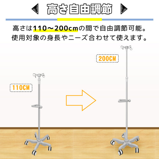 🌟【高さ自由調節】 点滴スタンドの高さは110~200cmの間で自由に調節が可能。子供から大人まで身長や使用ニーズに合わせて使うことができます。🌟【安定性抜群&移動便利】 スタンドに五つのキャスターが付き、使用中の安定性を保ちながらスムーズな移動することを実現。更に、独特な脚部設計で、ス...