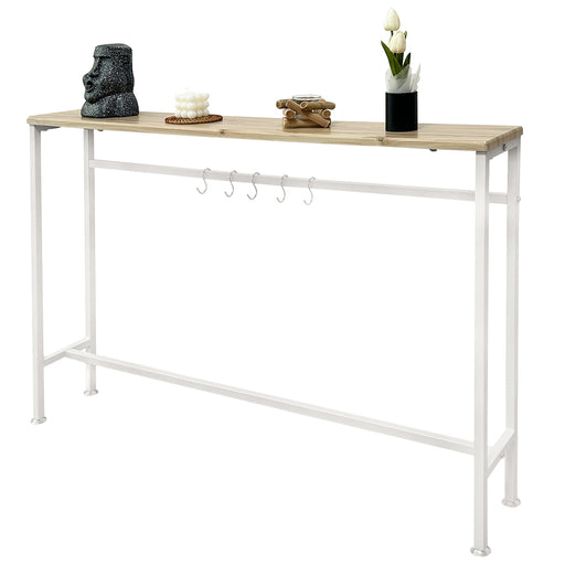 RAKU コンソールテーブル スリムタイプ フック5個付き 幅約120cm 奥行約20cm 高さ65/80cm 北欧風 おしゃれ 細長い 丸角加工 飾り棚 玄関収納 木目調天板 微調整可能なアジャスター お手入れ簡単 ナチュラル/ウォールナット