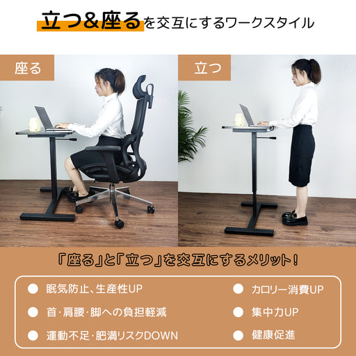 【2WAY使えるデスク】座ると立つを交互するワークスタイルできるガス圧昇降式デスク。座ると立つを交互することで眠気防止や集中力アップなどに役に立つ。【三段階の天板角度調節可能】用途や好みに合わせて天板角度は三段階調整可能。読書と絵画に便利だし、首筋にも優しい。【無段階高さ調整】ガス圧昇降デスク...