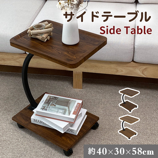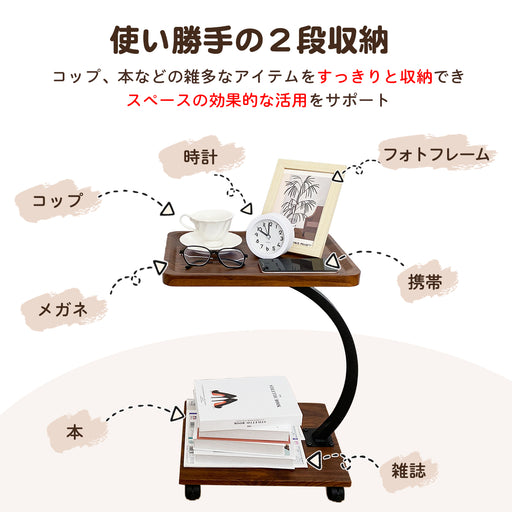 詳細を全部見るRAKU サイドテーブル ストッパー付きキャスター 移動簡単 C字型 家具に差し込み可能 木目調天板 お手入れ簡単 落下防止 角丸加工 2段収納 小物置き 寝室/リビング 約幅40×奥行30×高さ58cm おしゃれ