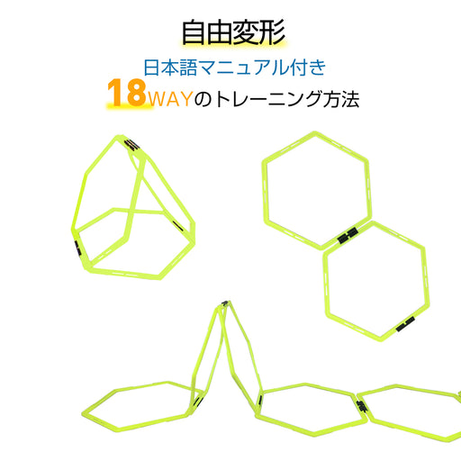 【スピード・アジリティトレーニング】様々なスポーツのスピード、敏捷性などの強化に役に立つスピードヘキサゴン。科学的なトレーニングする事によって、身体協調性、ひざの安定性や瞬発力などのUPに期待できる。 【自由変形】六角形のリングは着脱可能な設計で、作れるコースが多くなり、面白さもあり実用性も高...