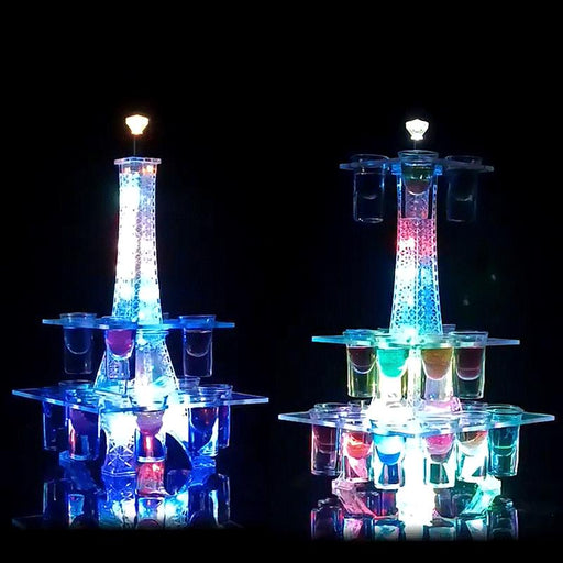 【独特な美しいLED酒棚】このLED酒グラス棚は、他の酒棚とは異なり、美しい7色のLED光が魅了的に変化します。その光は非常に美しく、場所を飾る際に心を奪われることでしょう。色彩の変化だけでなく、カップの美しさも同時に楽しむことができます。 【雰囲気を盛り上がる】塔設計の酒グラス棚は、モダンで...