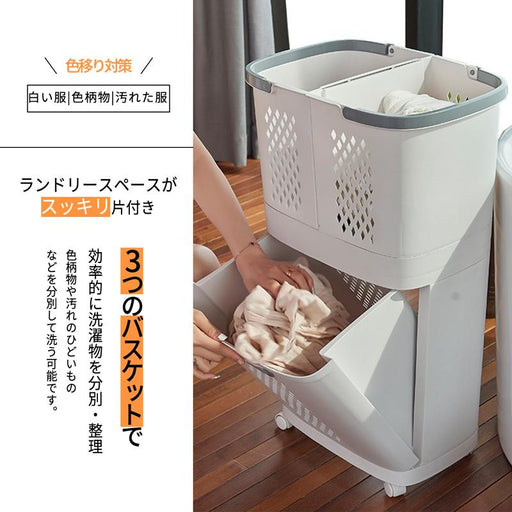 🍇【効率的に洗濯物を整理】 3つのバスケットで色柄物や汚れのひどいものなどを分別して洗う可能です。🍇【大容量&省スペース】 大容量約58Lで家族の人数が多くても洗濯物がラクラク入り、毛布なども入るのが便利です。楕円ですき間において邪魔になりません。🍇【キャスター付きで移動便利】 洗濯機から干し...